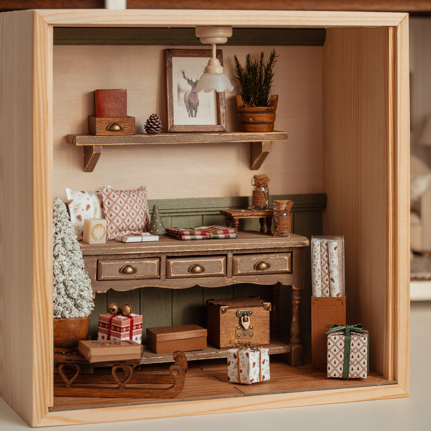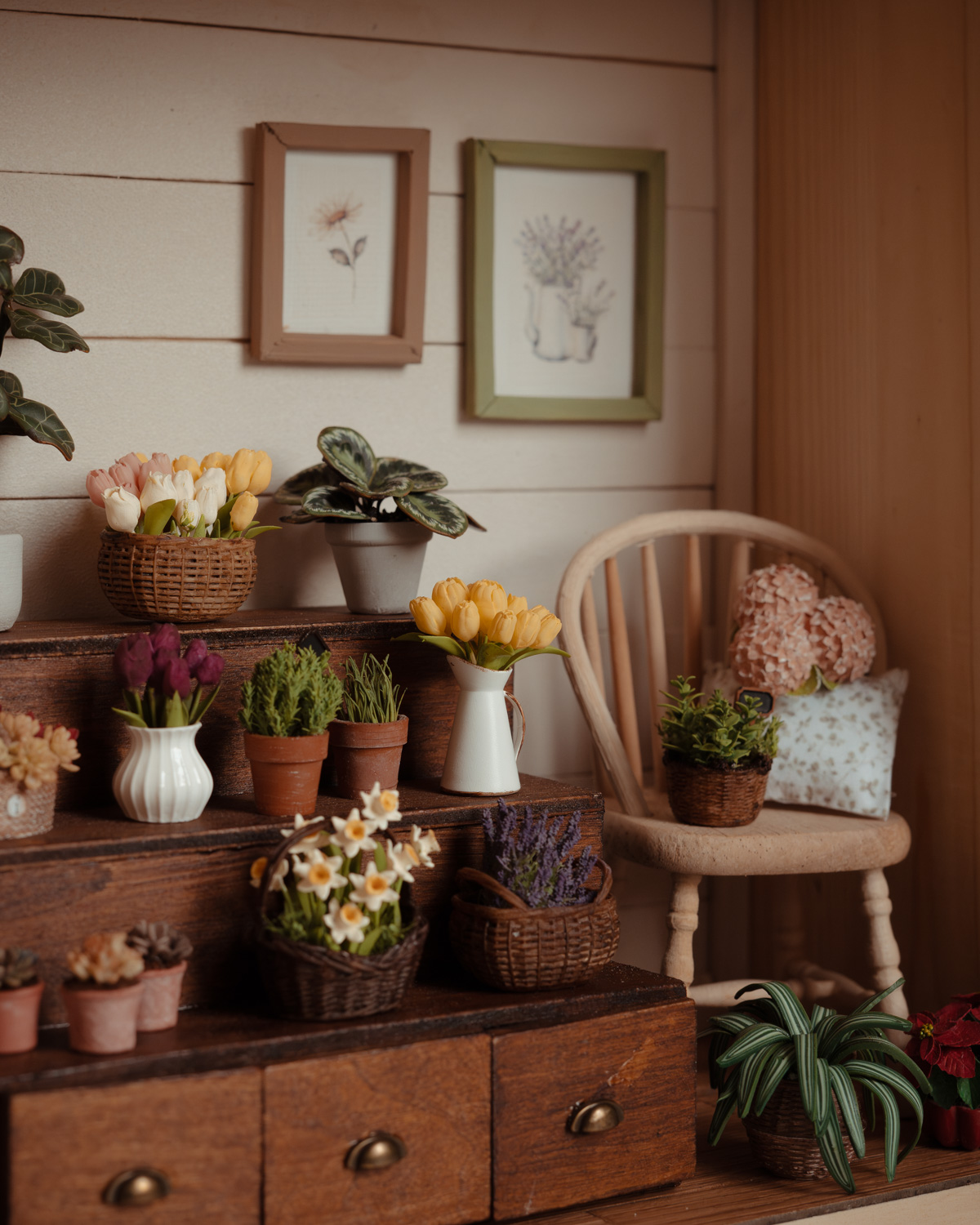 La admiración por los espacios acogedores me acompañó desde la infancia, cuando me fascinaban las casas de muñecas y los pequeños mundos imaginarios. En 2020 redescubrí esta pasión y, desde entonces, crear miniaturas se ha convertido en una forma de reconectar con esa parte de mí que nunca dejó de soñar. Comencé con kits DIY de distintas marcas y, tras aprender técnicas, sentí la necesidad de crear mis propios accesorios, planteándome siempre la misma pregunta: ¿cómo podría hacer esto en miniatura?