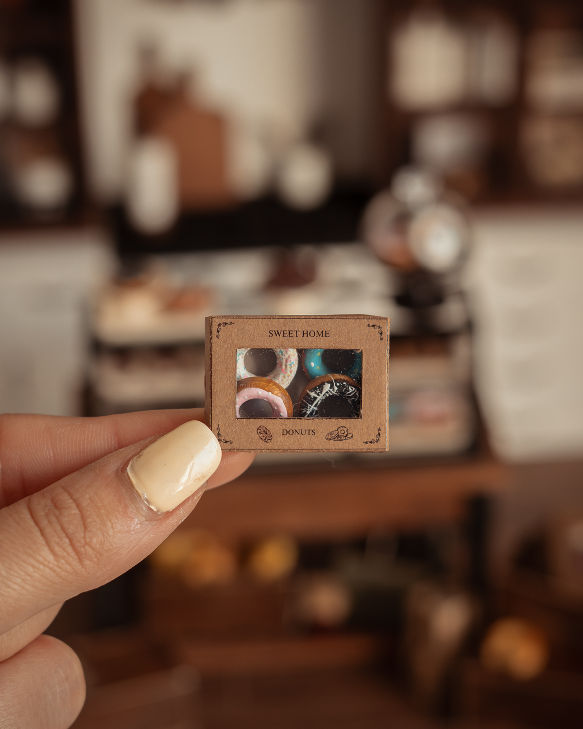 Tags accesorio miniatura, caja donuts miniatura, casa de muñecas, cocina 1:12, comida miniatura, diorama 1:12, donuts 1:12, dulces miniatura, miniatura artesanal, postres miniatura, repostería miniatura, tienda miniatura