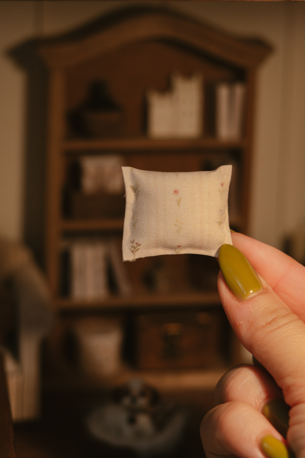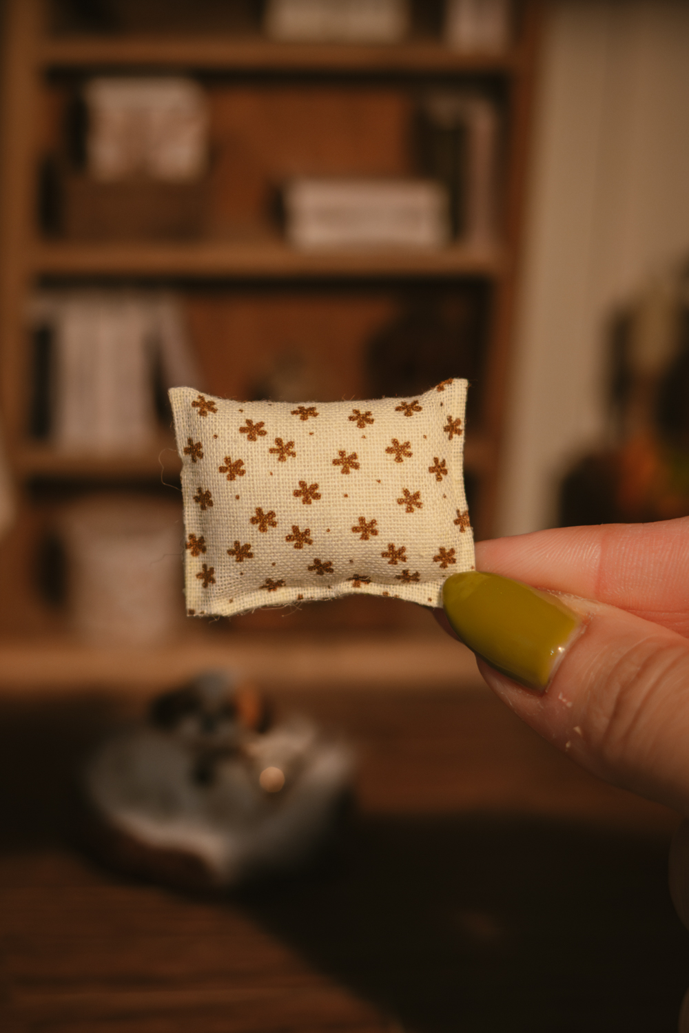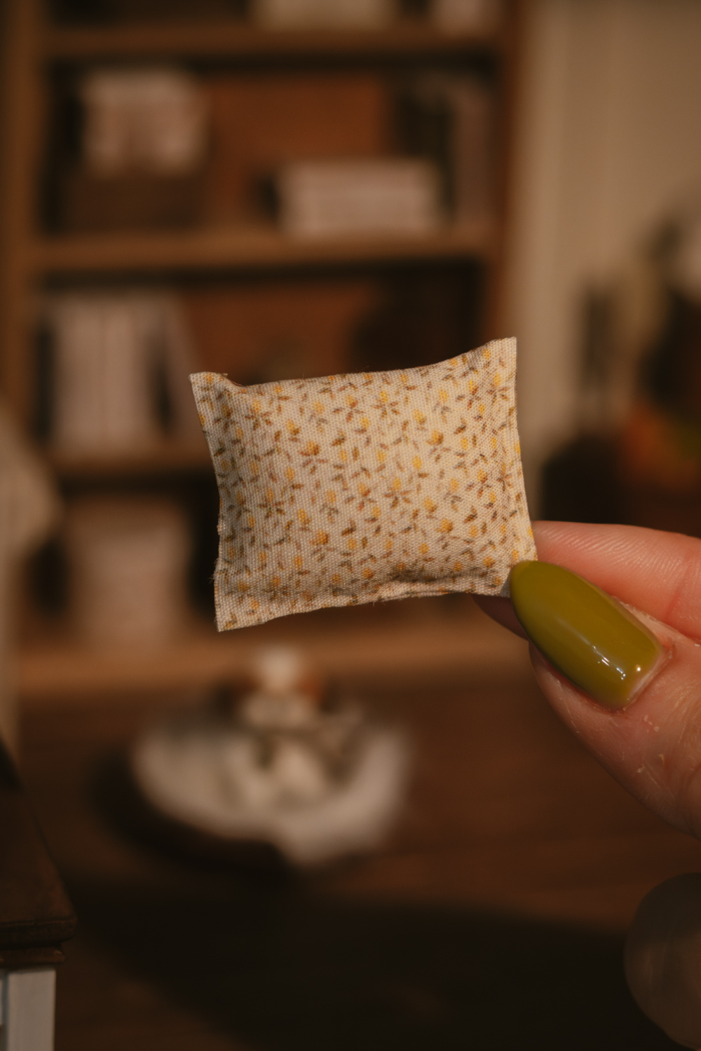 Cada cojín es una miniatura hecha a mano, con ligeras variaciones propias del trabajo artesanal, convirtiendo cada pieza en un accesorio único para tu decoración en miniatura.