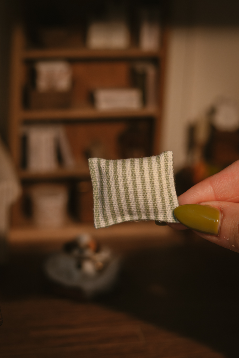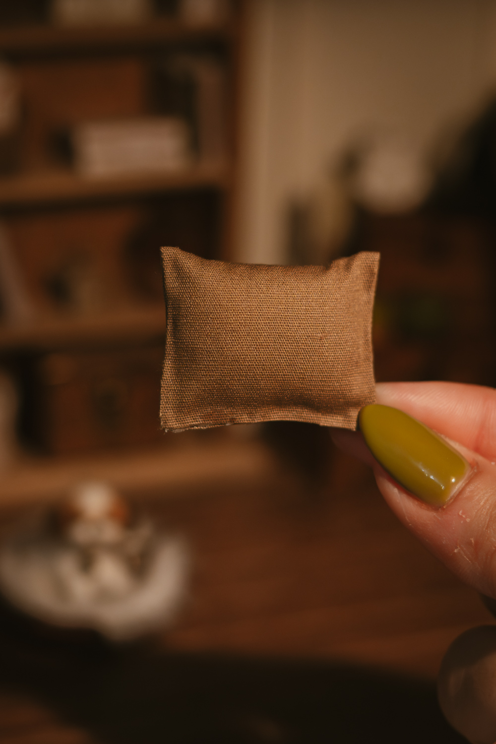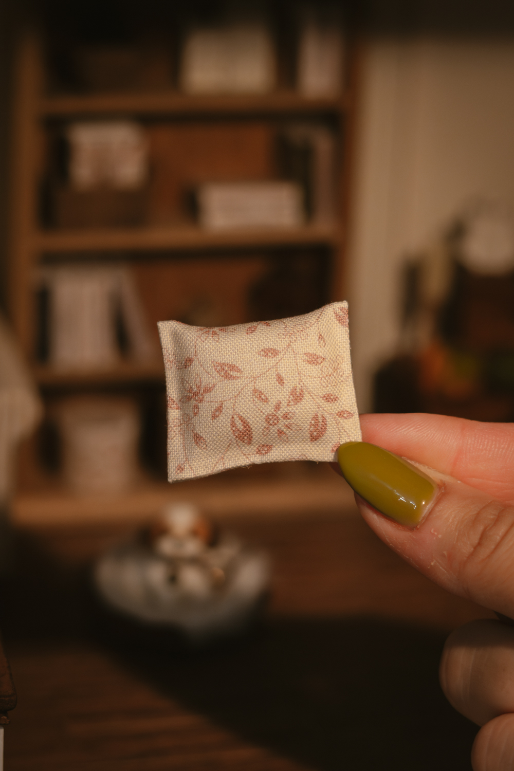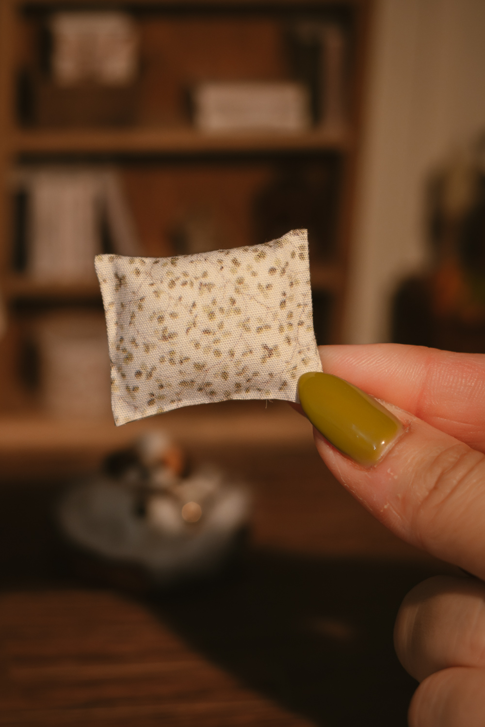 Cada cojín es una miniatura hecha a mano, con ligeras variaciones propias del trabajo artesanal, convirtiendo cada pieza en un accesorio único para tu decoración en miniatura.