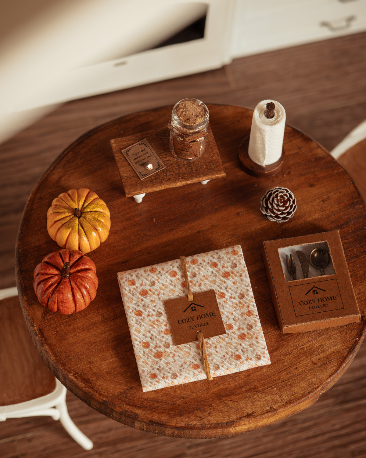 Tags accesorio decorativo, algodón, artesanal, calabazas, casa de muñecas, cozy home, decoración, decoración otoñal, detalle miniatura, dollhouse, escena acogedora, escena en miniatura, handmade, hogar en miniatura, hojas, mantel miniatura, miniatura, miniaturas, miniature, otoño, realismo, textil en miniatura