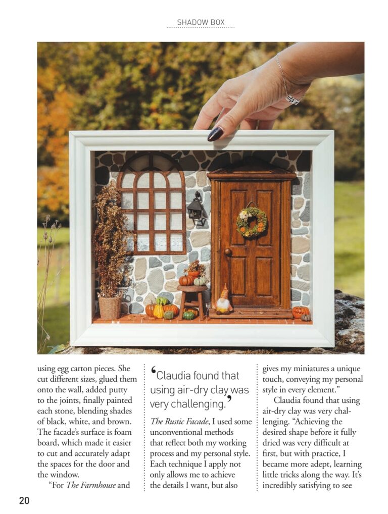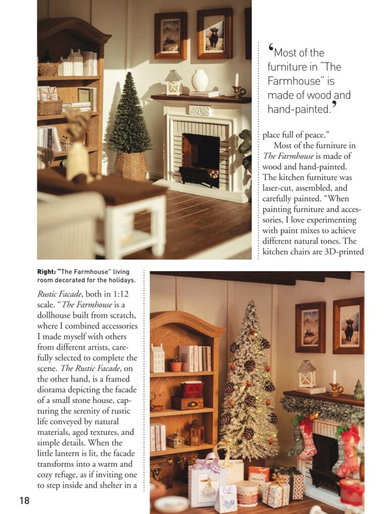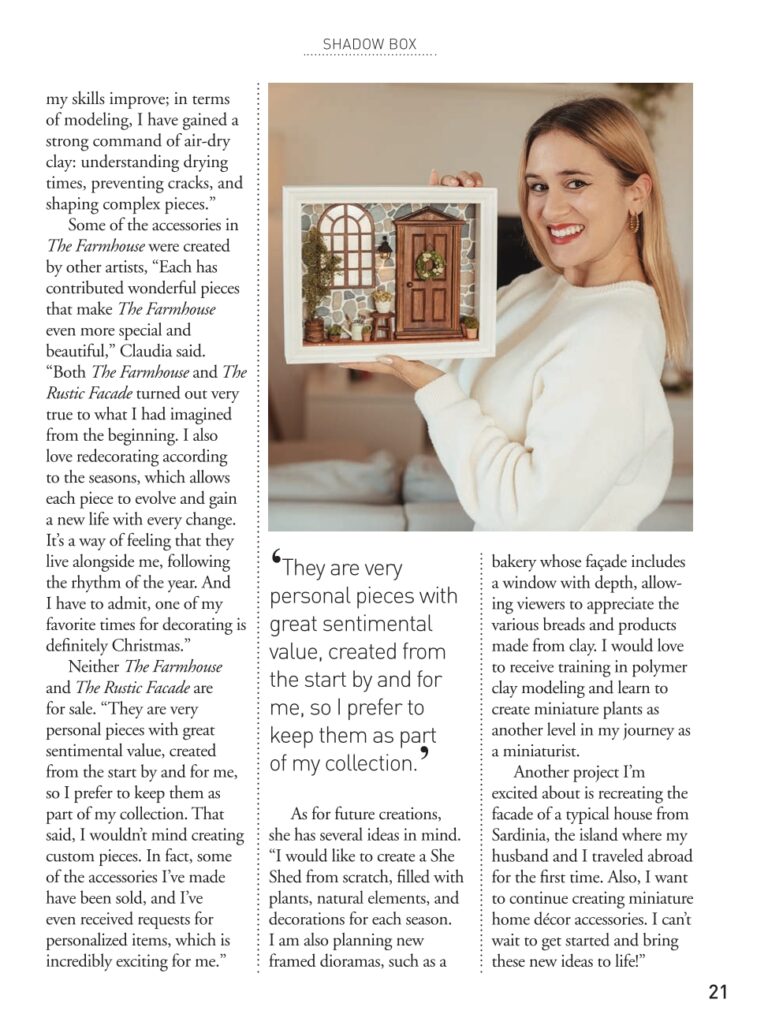 Hoy quiero compartir algo muy especial: es un honor inmenso haber aparecido en un artículo de la revista American Miniaturist con mis piezas The Farmhouse y The Rustic Facade. Aún me cuesta creerlo.